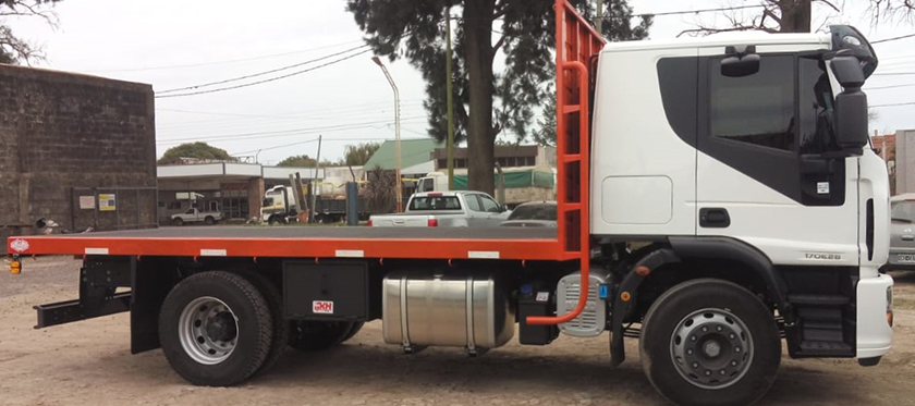 ESTRUCTURA: Estructura y plataforma construida con chapa estampada de 4 mm de espesor. Forrada en chapa estampada Nº 16.